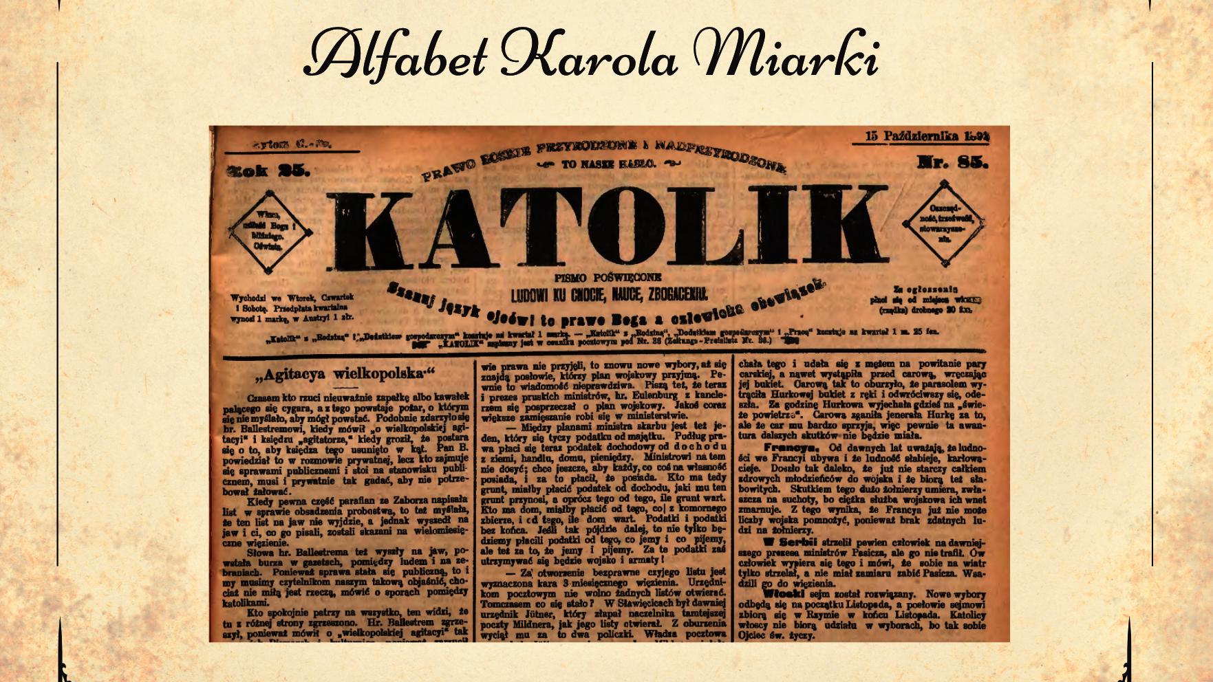 P – podróże Miarki wiązały się z jego działalnością społeczno-polityczną. W latach 60. Często bywał w Cieszynie (współpraca z Pawłem Stalmachem i „Gwiazdką Cieszyńską”, ślub w maju 1866 r. z Emilią Zanibalówną). W 1864 r. odbył podróż do Gniezna i Poznania. Pokłosiem tego wyjazdu była rozprawa „Pruski Górnoślązak i Wielkopolanin”. Zapoczątkował patriotyczne pielgrzymki Ślązaków do Krakowa. W 1878 r. przebywał w Zakopanem na kuracji zdrowotnej. W roku 1879 udał się z pielgrzymką do Rzymu i został przyjęty przez papieża Leona XIII. Relację z tej podróży zamieścił w Katoliku (nr 13/1979). Na zaproszenie ówczesnej inteligencji w 1880 r. był w Warszawie i wraz z żoną gościł w Hotelu Europejskim. Celem tej podróży była zbiórka datków dla mieszkańców Śląska dotkniętych klęską głodu. W ostatnim roku życia (1882) przebywał we Lwowie na zaproszenie Władysława Bełzy i organizacji oświatowej Macierz Polska. Nie zdążył odbyć kuracji w Karlowych Warach (ówczesny Karlsbad) z powodu braku środków materialnych.