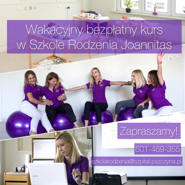 Jesteś w ciąży? Chcesz zdobyć wiedzę z zakresu porodu, połogu i opieki nad noworodkiem? Szkoła Rodzenia Joannitas w Pszczynie zaprasza na bezpłatny wakacyjny kurs. Spotkania przeznaczone są dla przyszłych rodziców, którzy chcieliby wyruszyć w piękną rodzicielską podróż. Zajęcia prowadzone będą w czerwcu, lipcu oraz sierpniu. Liczba miejsc ograniczona.Więcej informacji na stronie internetowej: https://www.szpital.pszczyna.pl/szkola-rodzenia/, pod nr tel. 601-469-355 lub po wysłaniu wiadomości na adres e-mail: szkolarodzenia@szpital.pszczyna.pl