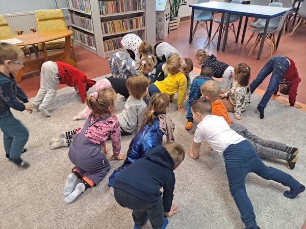Przedszkolaki świetnie bawiły się, naśladując zachowanie kotów oraz wykonały kocią zakładkę do ulubionej książki.