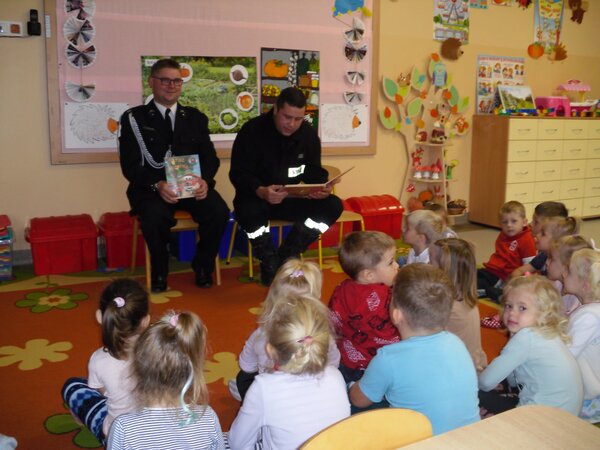 Dzieci wysłuchały historii o tym jak samochodzik Franek został strażakiem oraz jak strażak Sam uratował uwięzionego kotka. Okazało się że tak jak pomoc ludziom, tak czytanie nie sprawia naszym dzielnym strażakom żadnych problemów.