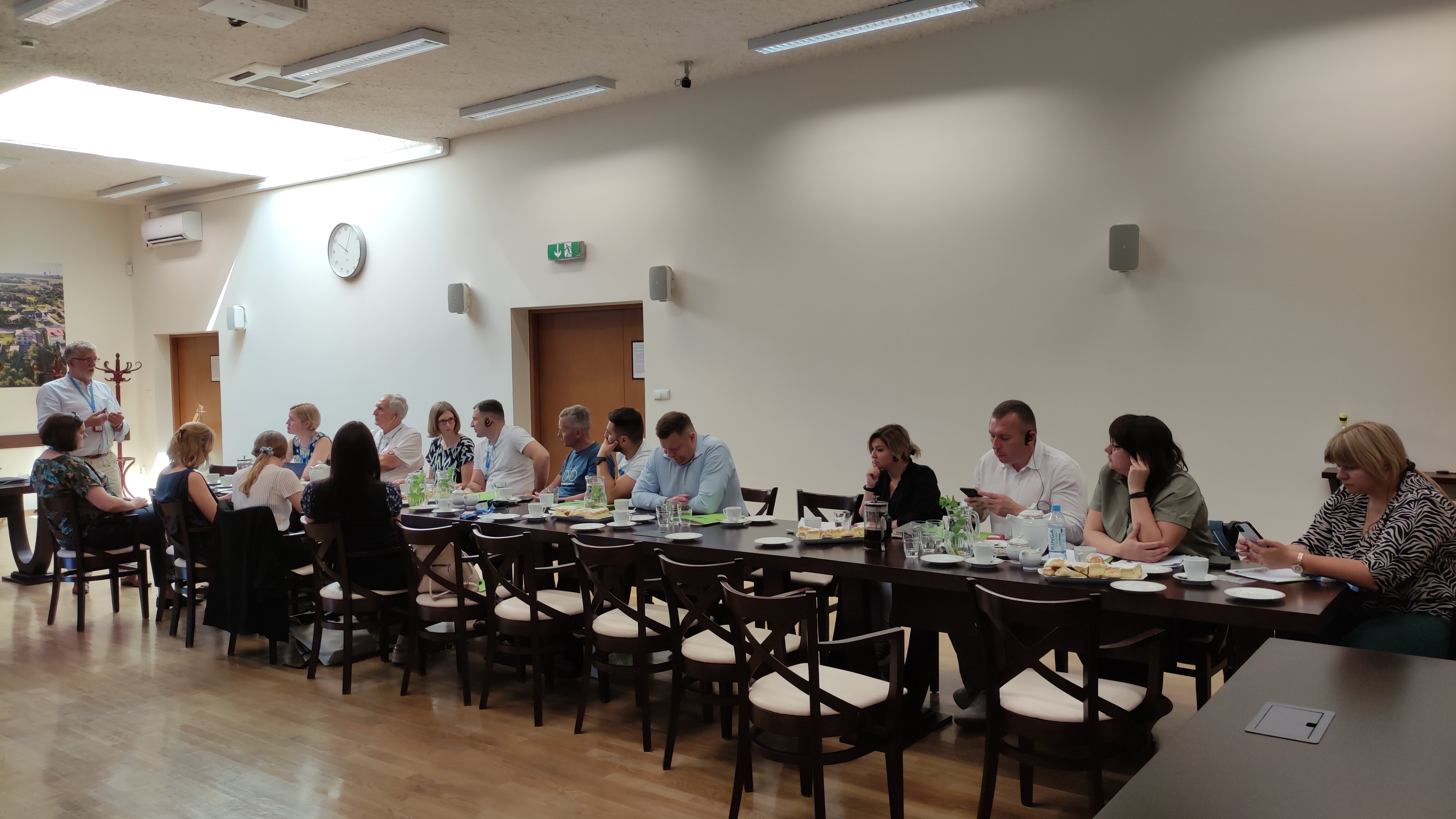 W środę, 5 lipca, w urzędzie gminy gościliśmy delegację z Ukrainy. Spotkanie odbyło się w ramach unijnego programu wymiany dla regionów węglowych w okresie przejściowym. Grupa z Ukrainy w ramach wizytowania Śląska odwiedziła gminę Pawłowice i spotkała się z wójtem gminy Franciszkiem Dziendzielem i jednocześnie wiceprzewodniczącym Stowarzyszenia Gmin Górniczych. Celem wizyty była rozmowa o doświadczeniach Pawłowic z transformacją energetyczną.Wśród gości z Ukrainy znaleźli się m.in burmistrzowie miejscowości z zachodniej Ukrainy, m.in. z Wołynia, radni, przewodniczący gmin oraz przedsiębiorcy. Wójt Franciszek Dziendziel przedstawił gminę i opowiedział, jak przebiega proces transformacji. Wspomniał o inwestycjach w fotowoltaikę czy uliczne oświetlenie ledowe w ramach zadań gminnych, ale również o dofinansowaniach dla mieszkańców w nowoczesne źródła energii. Gości interesowało, w jaki sposób na stosunkowo niewielki teren przyciągnąć przedsiębiorców, skąd gmina pozyskuje środki na rozwój energetyczny i czy dla rozwoju gminy ważniejsze są inwestycje czy potrzeby mieszkańców.Po wizycie w Pawłowicach grupa udała się na spotkanie w Jastrzębiu-Zdroju i Gierałtowicach.