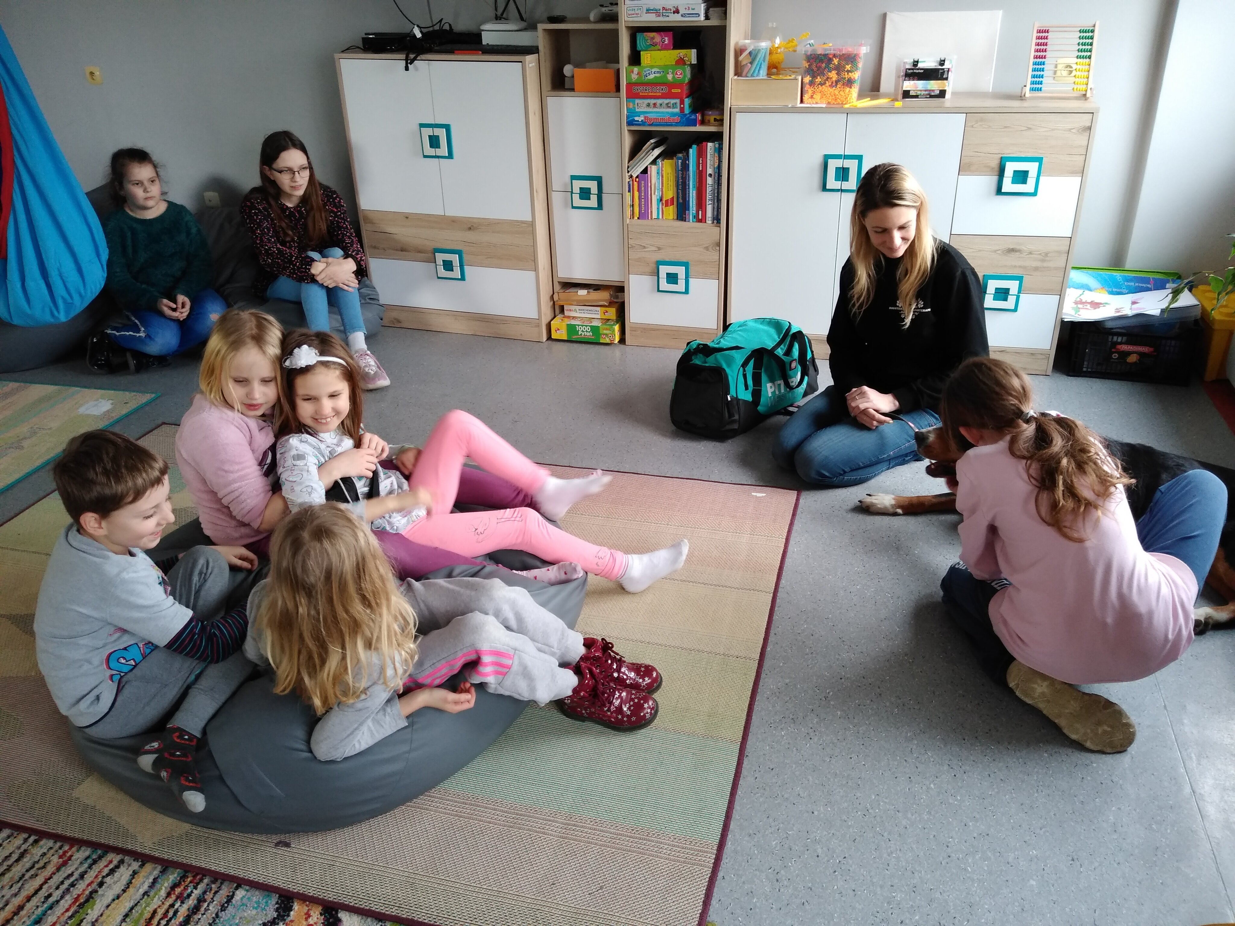 Dnia 7 marca 2023 r. odwiedził nas piesek Szelka. Tym razem na zajęciach dzieci dowiedziały się, jak dbać o pieska i jak go żywić, aby jak najdłużej był zdrowy. Czego nie może jeść pies ? Czekolady, winogron, rodzynek, cebuli, ziemniaków. Dbanie o psa to zaspokojenie jego psich potrzeb węszenia, ruchu, zabawy, snu i zapewnienie mu bezpieczeństwa.