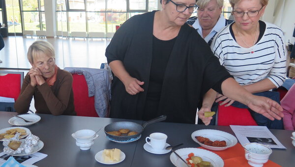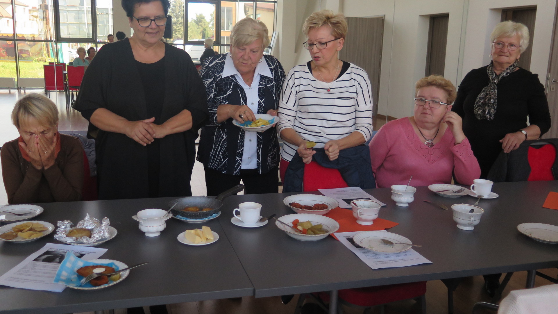 W ramach wczorajszych dopołudniowych spotkań z kulturą, seniorki z gminy Pawłowice przygotowywały potrawy z ziemniaka. Były placki ziemniaczane, frytki, ziemniaczki w mundurkach z czosnkowym dipem. Jednak najciekawsze okazały się przepisy na ……… maseczki upiększające właśnie z ziemniaka. Warzywo tak popularne w polskiej kuchni, dzięki dużej zawartości witaminy C, węglowodanów oraz skrobi można zastosować do produkcji domowych maseczek. Po wymianie doświadczeń i przepisów oraz przygotowaniu potraw z ziemniaka, znalazł się czas na degustację.