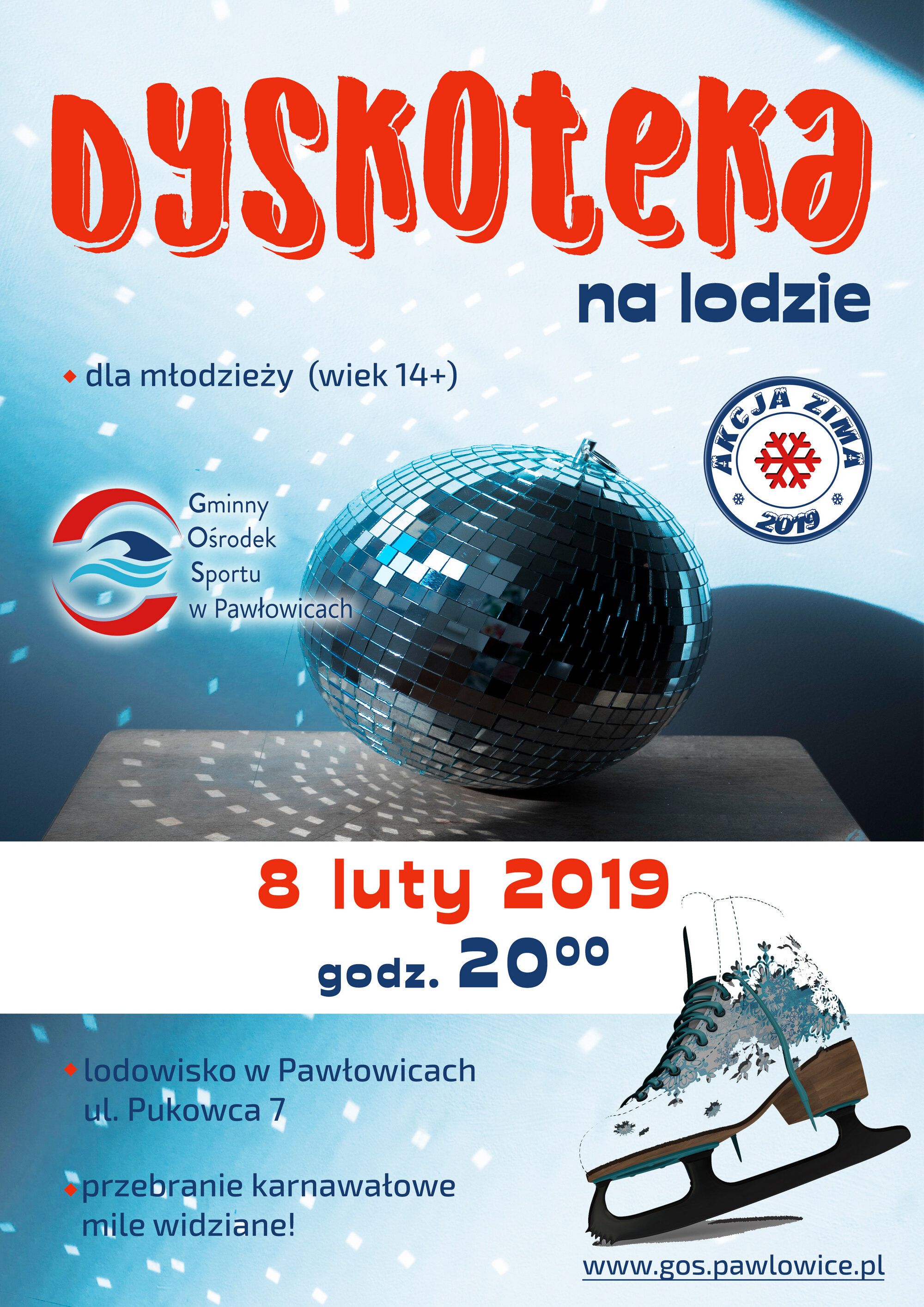 Chcesz podnieść swoją sprawność fizyczną i miło spędzić czas? Zapraszamy 8 lutego o godz. 2000 na drugą odsłonę „Dyskoteki na lodzie”. To niepowtarzalna okazja, aby poślizgać się w rytm muzyki. Wystarczy założyć łyżwy!