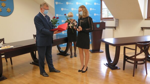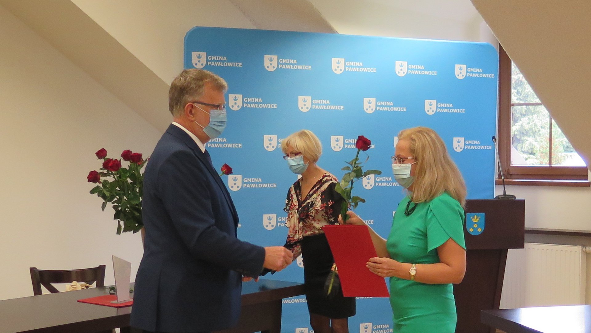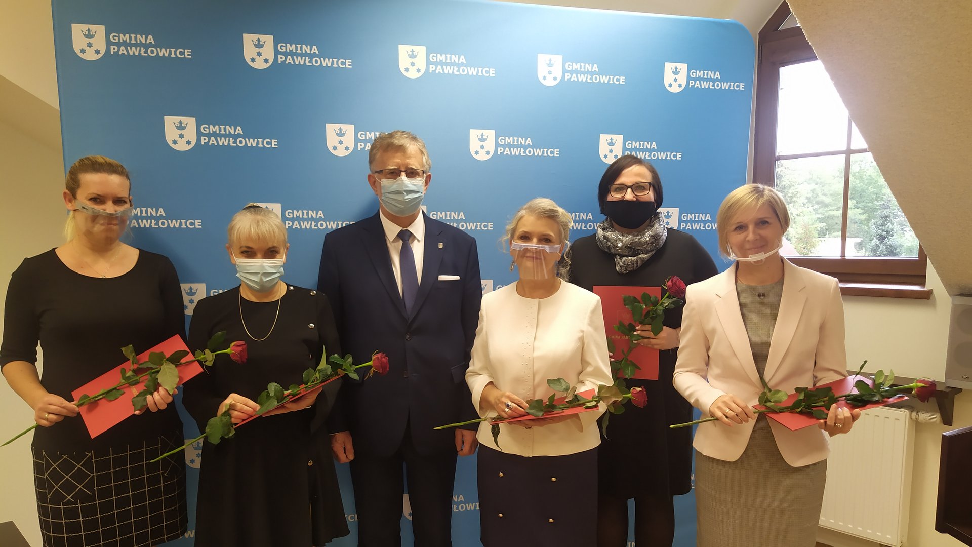 Z okazji Dnia Komisji Edukacji Narodowej wójt Franciszek Dziendziel wręczył nagrody dla nauczycieli oraz dyrektorów z gminnych szkół i przedszkoli. Z uwagi na pandemię uroczystość miała skromny charakter i odbyła się w Sali Sesyjnej w Urzędzie Gminy Pawłowice z podziałem na dwie tury. Nie zabrakło życzeń i podziękowań dla pedagogów oraz gratulacji dla obecnych w sali trzech uczennic, które zdobyły w tym roku tytuł Najlepszych Absolwentek w gminie Pawłowice. Laureatkami zostały Alicja Czerwinska z SP nr 1 – I miejsce, Emilia Nawara z SP nr 1 – II miejsce i Kinga Dzienidziel z SP Warszowice – III miejsce.