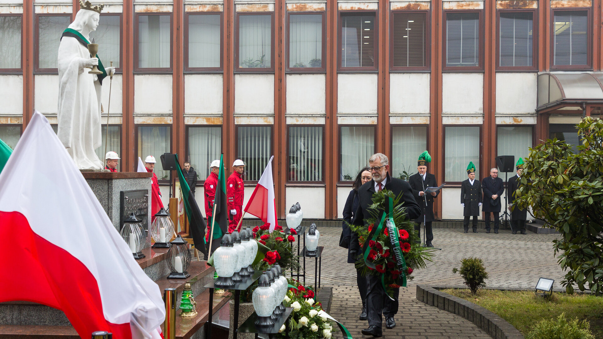 Przed południem, na placu przy kopalni KWK Pniówek pod pomnikiem św. Barbary złożono kwiaty i zapalono znicze, by oddać hołd górnikom, którzy zginęli w katastrofach górniczych. Kwiaty złożyły m.in. władze Jastrzębskiej Spółki Węglowej i kopalni KWK Pniówek, przedstawiciele pawłowickiego samorządu wójt Franciszek Dziendziel i zastępca Joanna Śmieja, delegacje związków zawodowych. W uroczystościach brał udział również Wojewoda Śląski Jarosław Wieczorek, przewodniczący NSZZ Solidarność Piotr Duda, Pełnomocnik Rządu do spraw transformacji spółek energetycznych i górnictwa węglowego Piotr Pyzik oraz rodziny zaginionych i tragicznie zmarłych górników.Uczestnicy uroczystości z towarzyszeniem orkiestry górniczej KWK Pniówek przeszli w pochodzie z kopalni do kościoła pw. Podwyższenia Krzyża świętego w Osiedlu Pawłowicach. Wzdłuż ul. Polnej dzieci z Zespołu Szkolno-Przedszkolnego w Pawłowicach razem z rodzicami i nauczycielami witały gości i górników. Msza w intencji ofiar katastrof górniczych, w której uczestniczył Prezydent RP, była sprawowana pod przewodnictwem księdza Arcybiskupa Metropolity Katowickiego Wiktora Skworca. Po mszy Andrzej Duda złożył kwiaty pod pomnikiem św. Barbary i spotkał się z bliskimi zmarłych górników, ratownikami oraz tymi, którzy ucierpieli w wyniku kwietniowych wybuchów w „Pniówku” i „Zofiówce”.fot. JSW / Dawid Lach