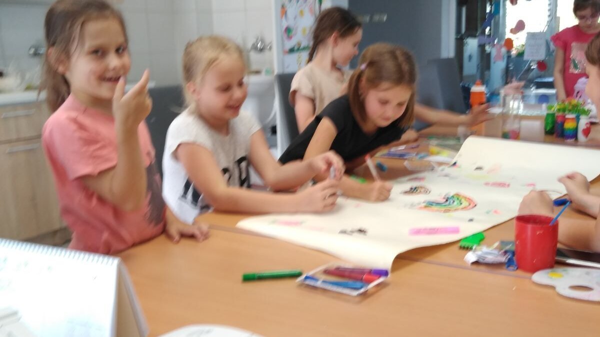 Z tej okazji w Różowych Okularach dzieci namalowały wspólną kolorowankę, która następnie została zawieszona na naszej tablicy.