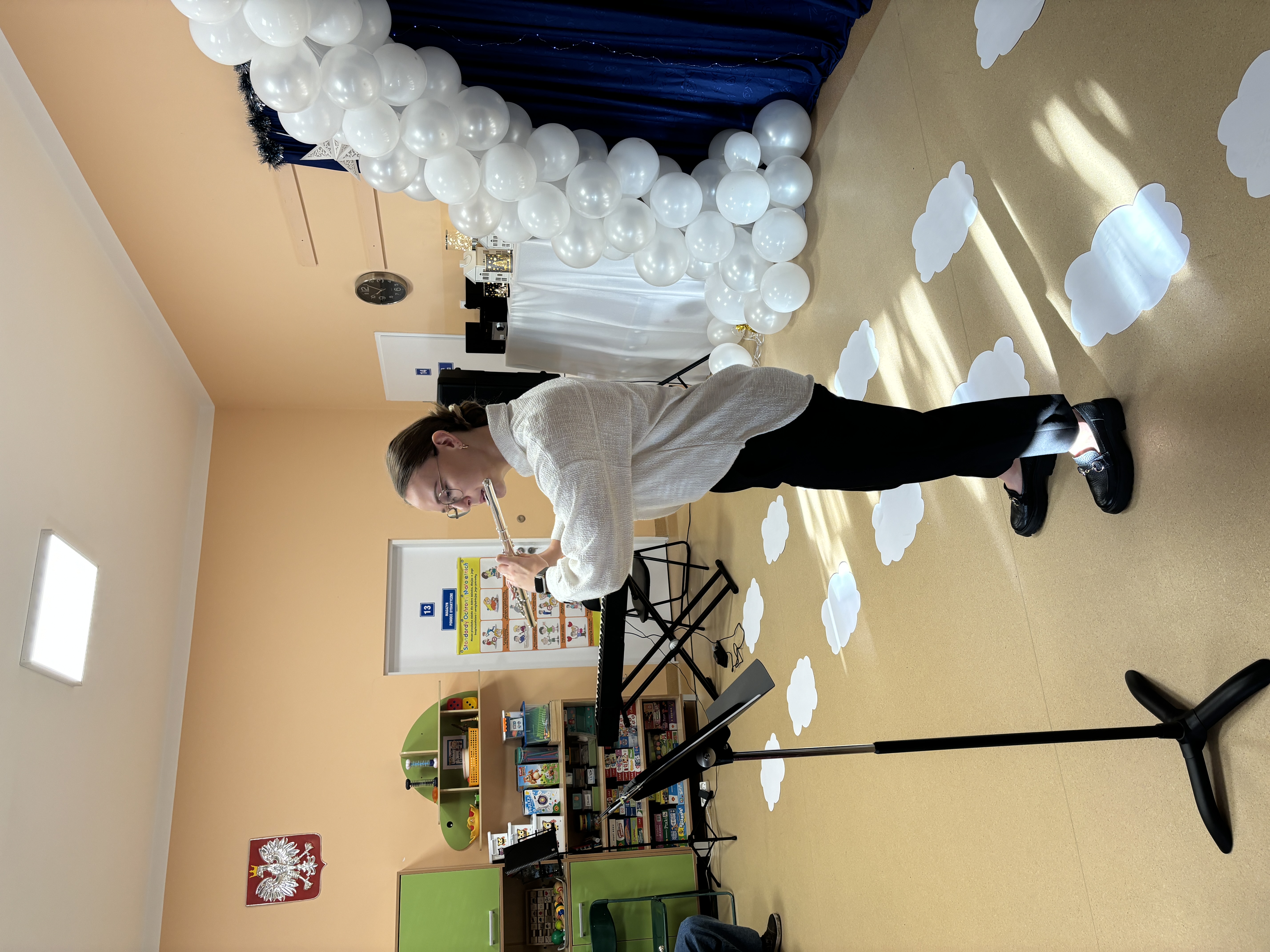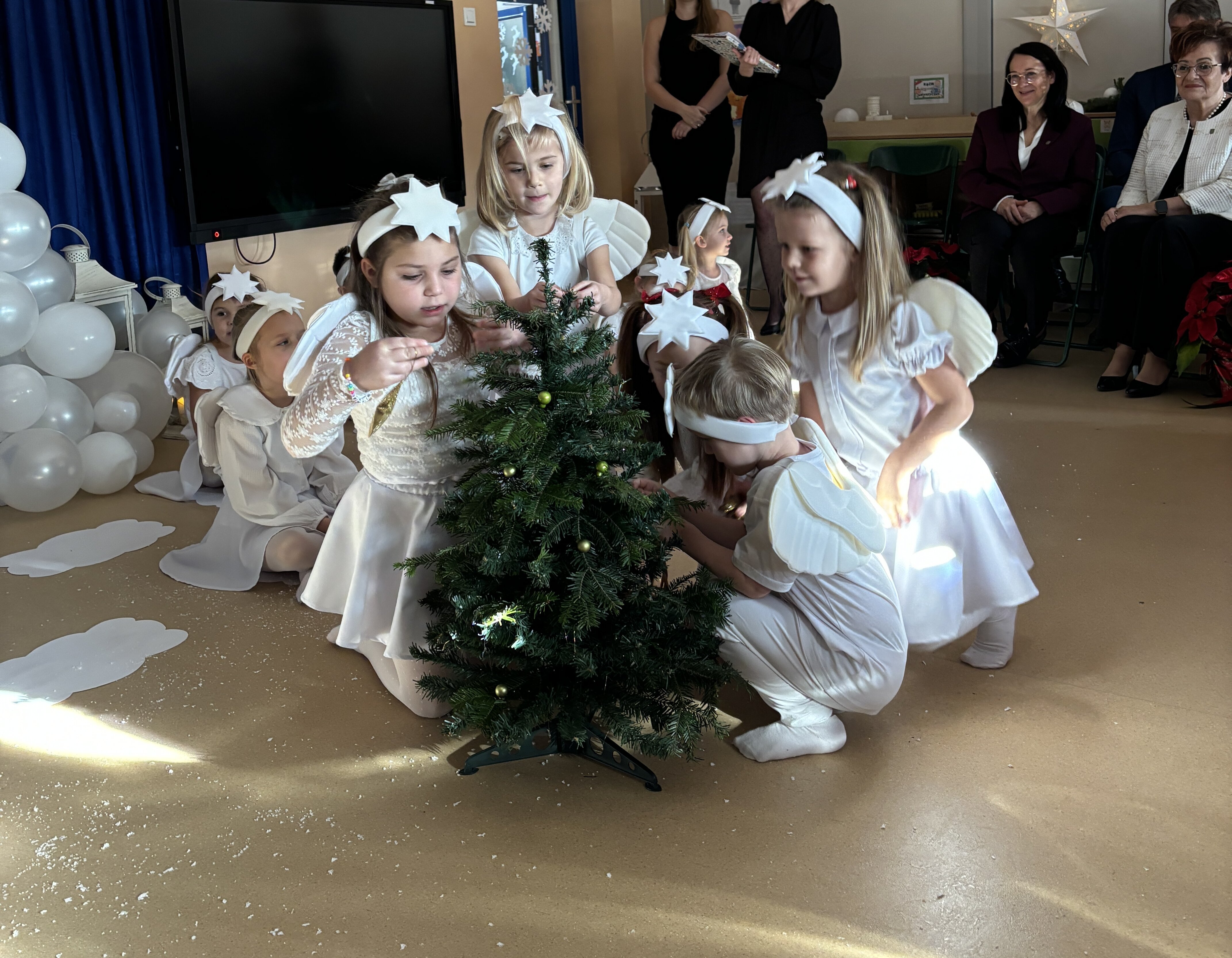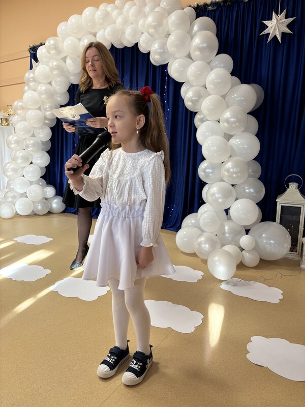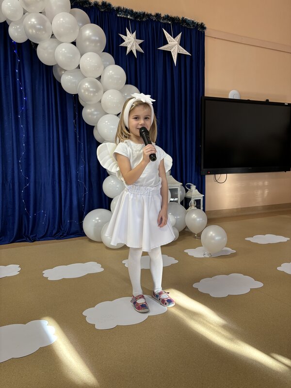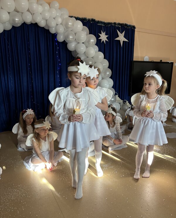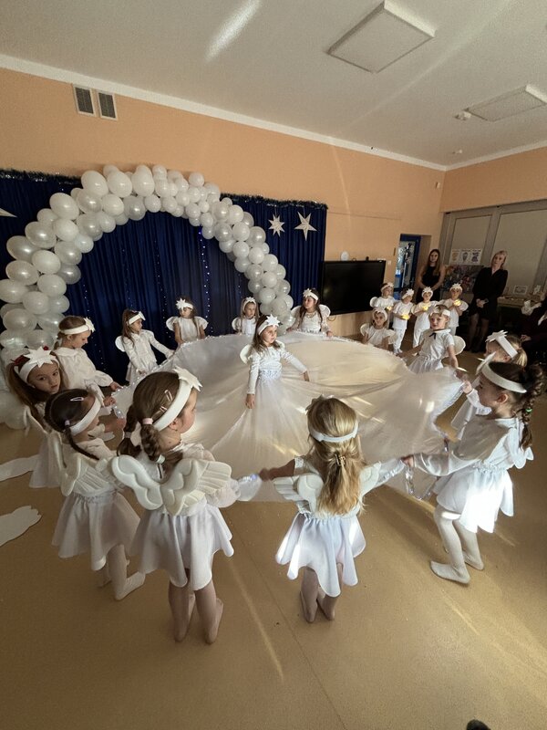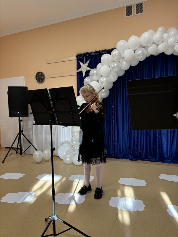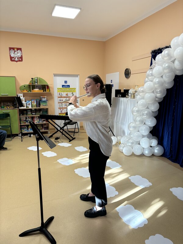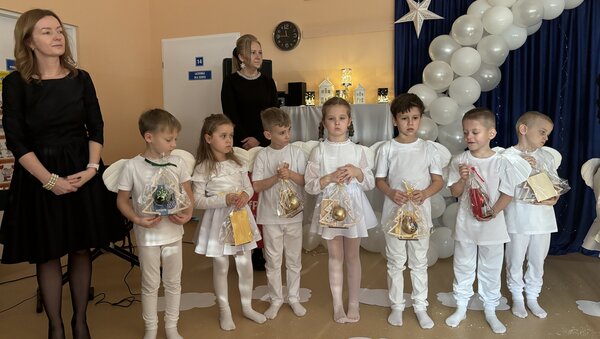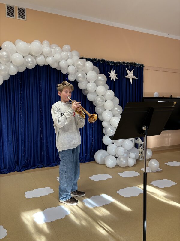Podczas uroczystości absolwenci przedszkola zaprezentowali swoje talenty muzyczne grając na flecie poprzecznym, skrzypcach, trąbce oraz instrumentach klawiszowych. Przedszkolaki pod okiem nauczycielek wystąpiły z pięknym programem świątecznym przygotowanym specjalnie na tę okazję. Na zakończenie mali artyści przekazali gościom serdeczne życzenia i obdarowali ich upominkami - drewanianą choinką z jubileuszową bombką.
