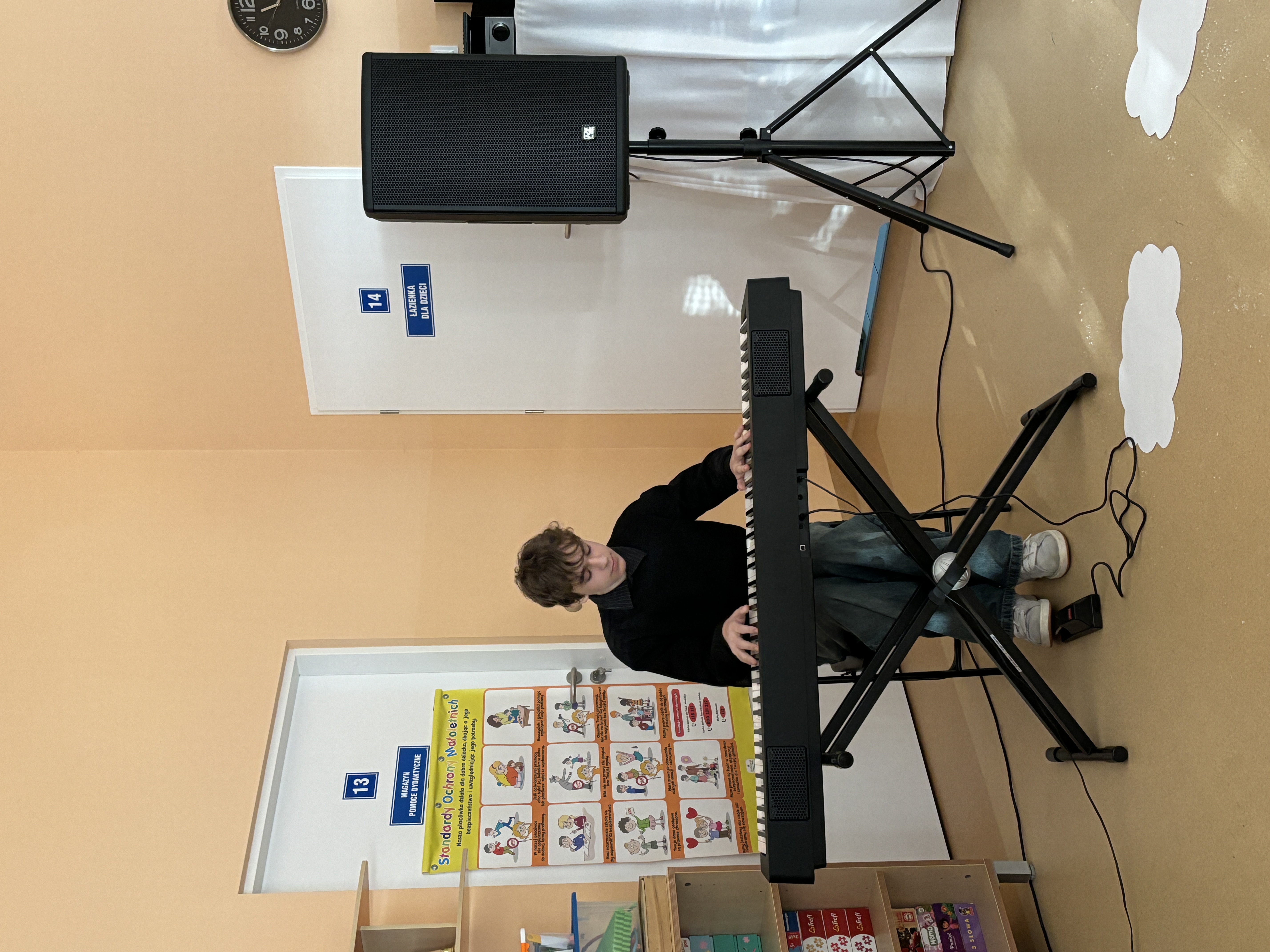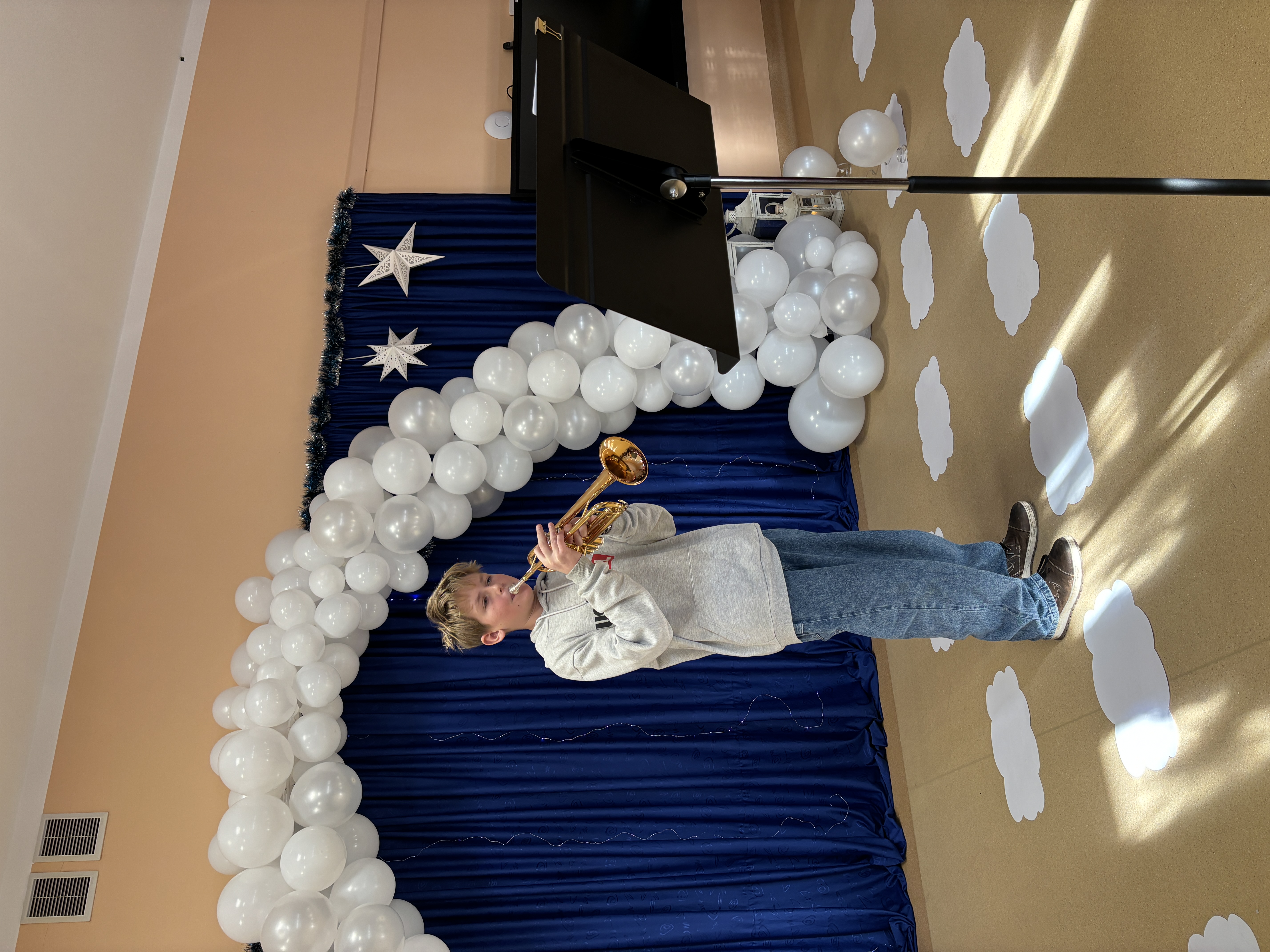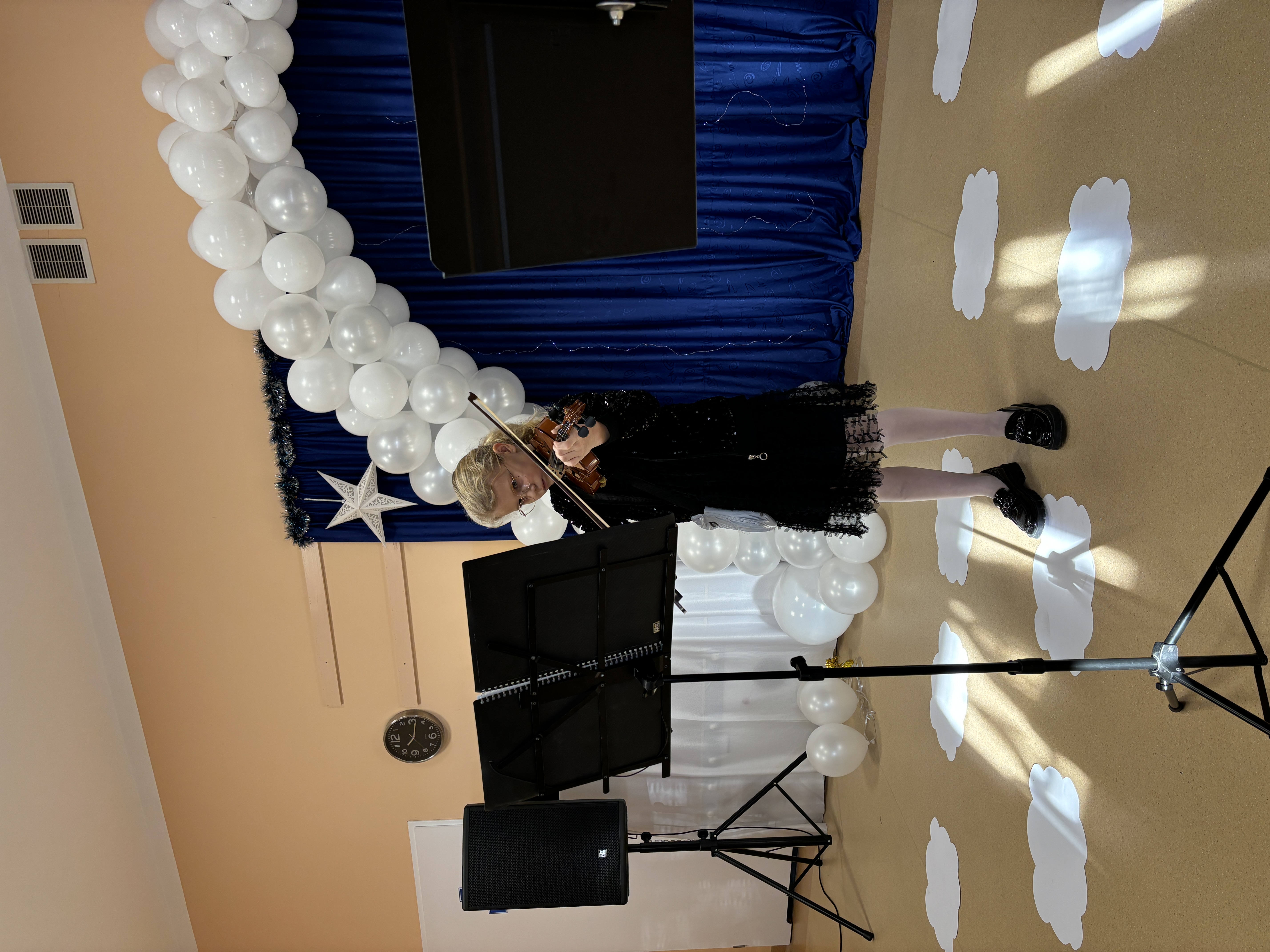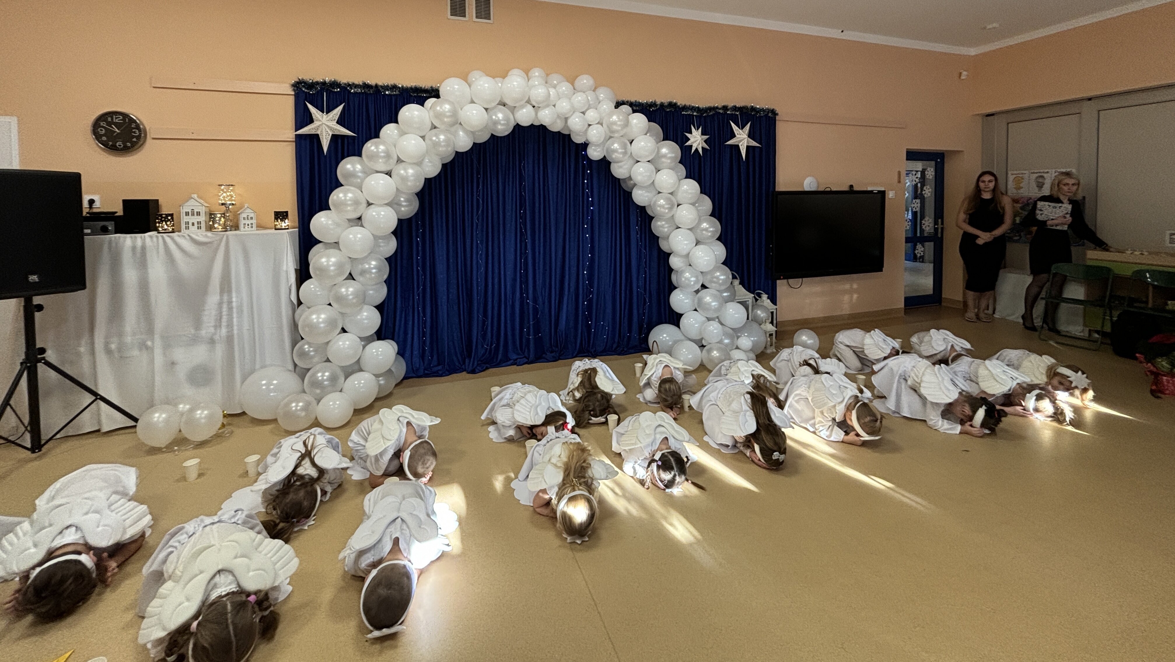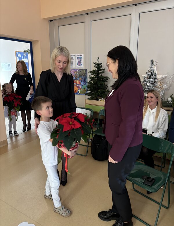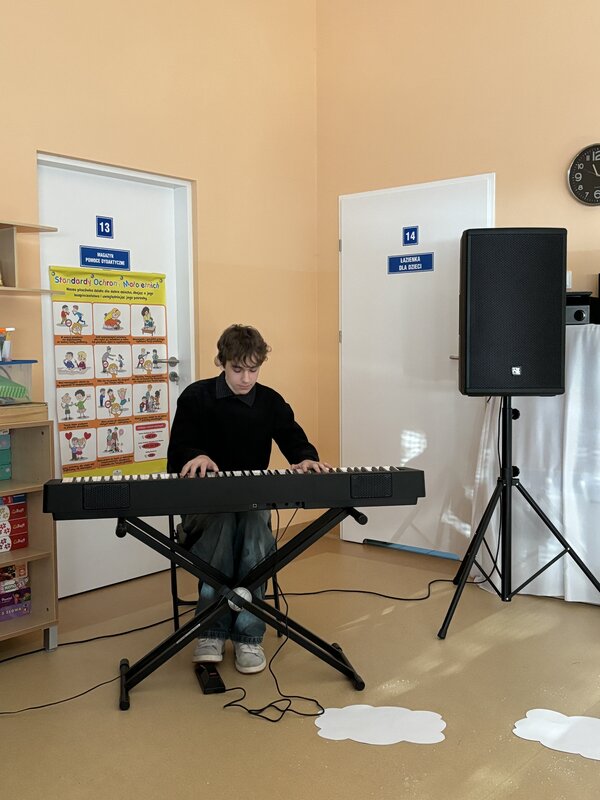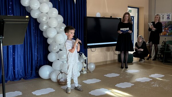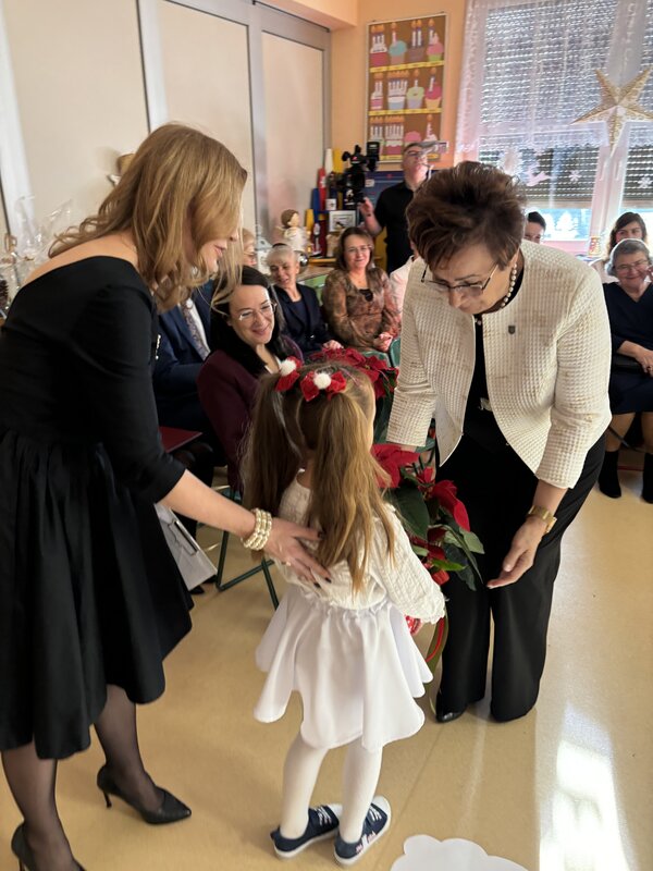 Podczas uroczystości absolwenci przedszkola zaprezentowali swoje talenty muzyczne grając na flecie poprzecznym, skrzypcach, trąbce oraz instrumentach klawiszowych. Przedszkolaki pod okiem nauczycielek wystąpiły z pięknym programem świątecznym przygotowanym specjalnie na tę okazję. Na zakończenie mali artyści przekazali gościom serdeczne życzenia i obdarowali ich upominkami - drewanianą choinką z jubileuszową bombką.