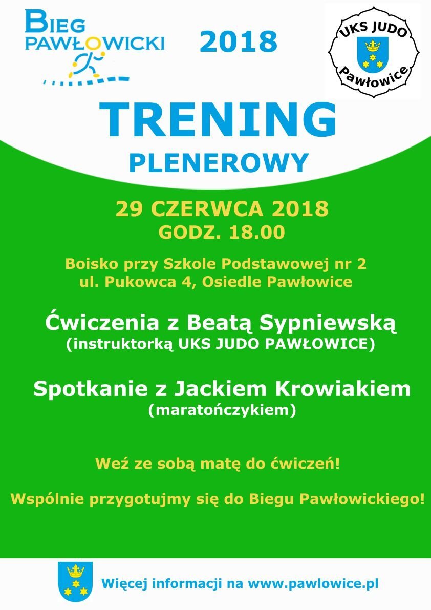 W przyszły piątek, 29 czerwca 2018 r. o godzinie 18.00 wszystkich chętnych zapraszamy na boisko przy szkole Podstawowej nr 2 w Pawłowicach (ul. Pukowca 4) na trening z Beatą Sypniewską - instruktorką klubu sportowego UKS JUDO Pawłowice, prowadzącą również zajęcia fitness. W rytm muzyki będziemy rozciągać mięśnie i przygotowywać się do sierpniowych zawodów. Uczestnikiem spotkania będzie mieszkaniec Osiedla Pawłowice - Jacek Krowiak – maratończyk, który o bieganiu wie chyba wszystko. Z uczestnikami treningu podzieli się swoją wiedzą, a jeżeli będzie taka potrzeba – pobiegnie razem z chętnymi. Nie zapomnijcie zabrać ze sobą maty do ćwiczeń i nie przejmujcie się ewentualnymi odpadami deszczu. Jeżeli aura nie będzie nam sprzyjać, do dyspozycji mamy salę gimnastyczną. Zapraszamy!