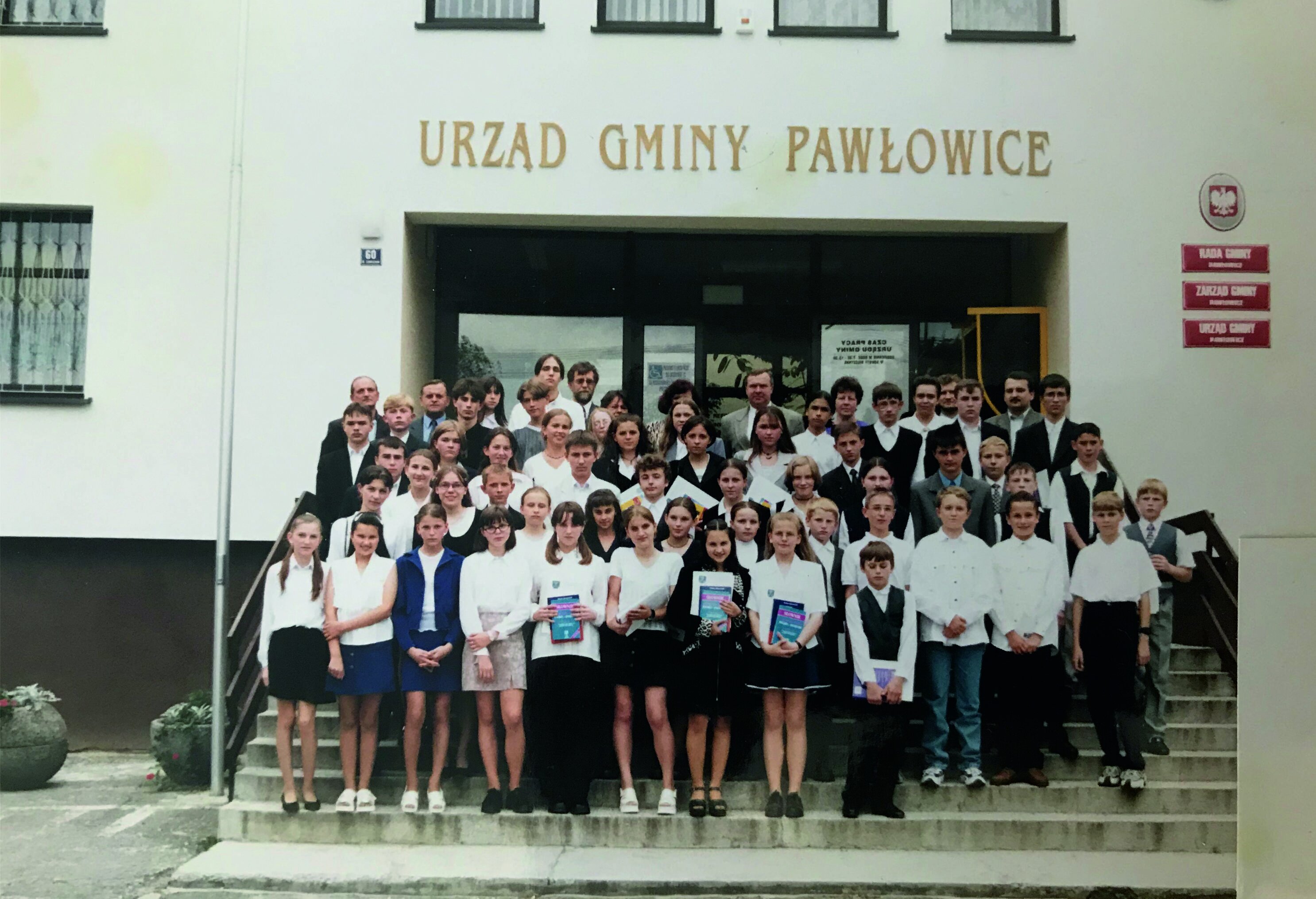 Najlepsi absolwenci szkół podstawowych w roku szkolnym 1998/99"Po raz pierwszy w naszej gminie na wniosek Komisji Działalności Społecznej Zarząd Gminy ogłosił konkurs o tytuł „najlepszego absolwenta” Konkurs tym ciekawszy, gdyż naukę w podstawówce w bieżącym roku kończą ośmioklasiści oraz szóstoklasiści, którzy od 1 września rozpoczną naukę w gimnazjach. Spośród uczniów klas szóstych do konkursu zgłoszono 26 kandydatów, zaś spośród uczniów klas ósmych – 30 kandydatów. Komisja powołana do oceny kandydatów uznała, że wszyscy uczniowie zgłoszeni do konkursu odpowiadają wymaganiom regulaminu i zasługują na miano laureatów (...)" [zob.fot.]***"Aby Gmina mogła żyć na miarę XXI wieku zadaniem obecnie rządzących jest tworzenie warunków do harmonijnego rozwoju gospodarczego, społecznego i kulturalnego. W trosce o ten rozwój w Urzędzie Gminy trwały prace na opracowaniem najważniejszych kierunków działania, a uwieńczeniem tych prac była sesja Rady Gminy w dniu 18 czerwca (...)""Po konsultacjach z Radami Sołeckimi, Komisjami Rady Gminy – Zarząd Gminy opracował i przedstawił do uchwalenia „Program funkcjonowania gminy Pawłowice do roku 2003 (...)"***Budowa roku 1998"Decyzja Rady Gminy kadencji 1994-1998 i trud wielu ludzi został doceniony w konkursie p.n. „Budowa roku” ogłoszonym i zorganizowanym przez Polski Związek Inżynierów i Techników Budownictwa, Ministerstwo Spraw Wewnętrznych i Administracji, Urząd Mieszkalnictwa i Rozwoju Miast oraz Główny Urząd Nadzoru Budowlanego.Do konkursu zgłoszonych zostało 76 budów różnego rodzaju z całego kraju (...)""II nagroda za budynek Szkoły Podstawowej Nr 3 w Pawłowicach została przyznana Urzędowi Gminy Pawłowice jako inwestorowi oraz wykonawcom. Wręczenie nagród odbyło się 15 lipca 1999 r. w Muzeum Kolekcji im. Jana Pawła II w Warszawie (...)" [zob.fot.]*TEKSTY, ZDJĘCIE I OPISY ZDJĘĆ POCHODZĄ Z KRONIKI GMINY PAWŁOWICE