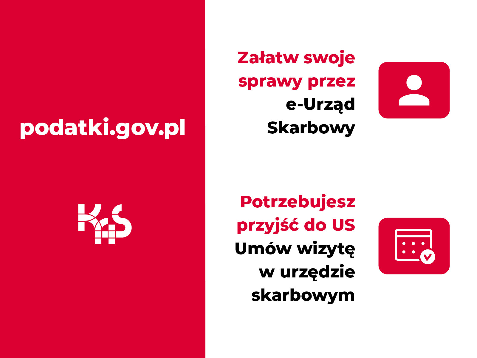 Wiele spraw z urzędem skarbowym można załatwić on-line, m.in. przez serwis e-Urząd Skarbowy. Jeśli zaistnieje konieczność przyjścia do urzędu skarbowego, należy wcześniej umówić wizytę. Obie usługi dostępne są na