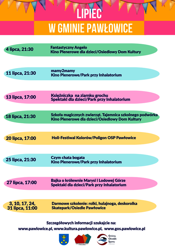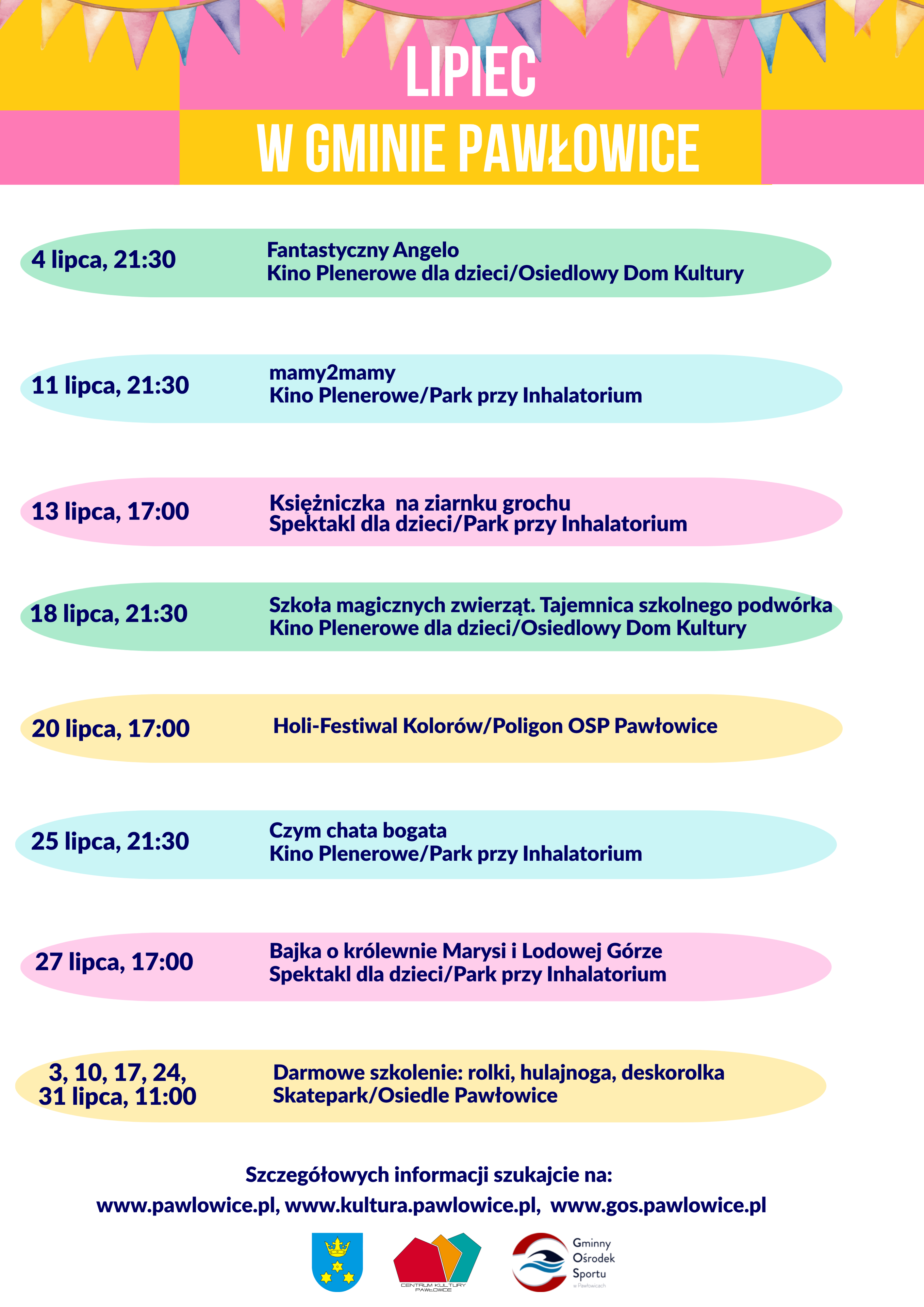 Lipcowy harmonogram wydarzeń w gminie Pawłowice: