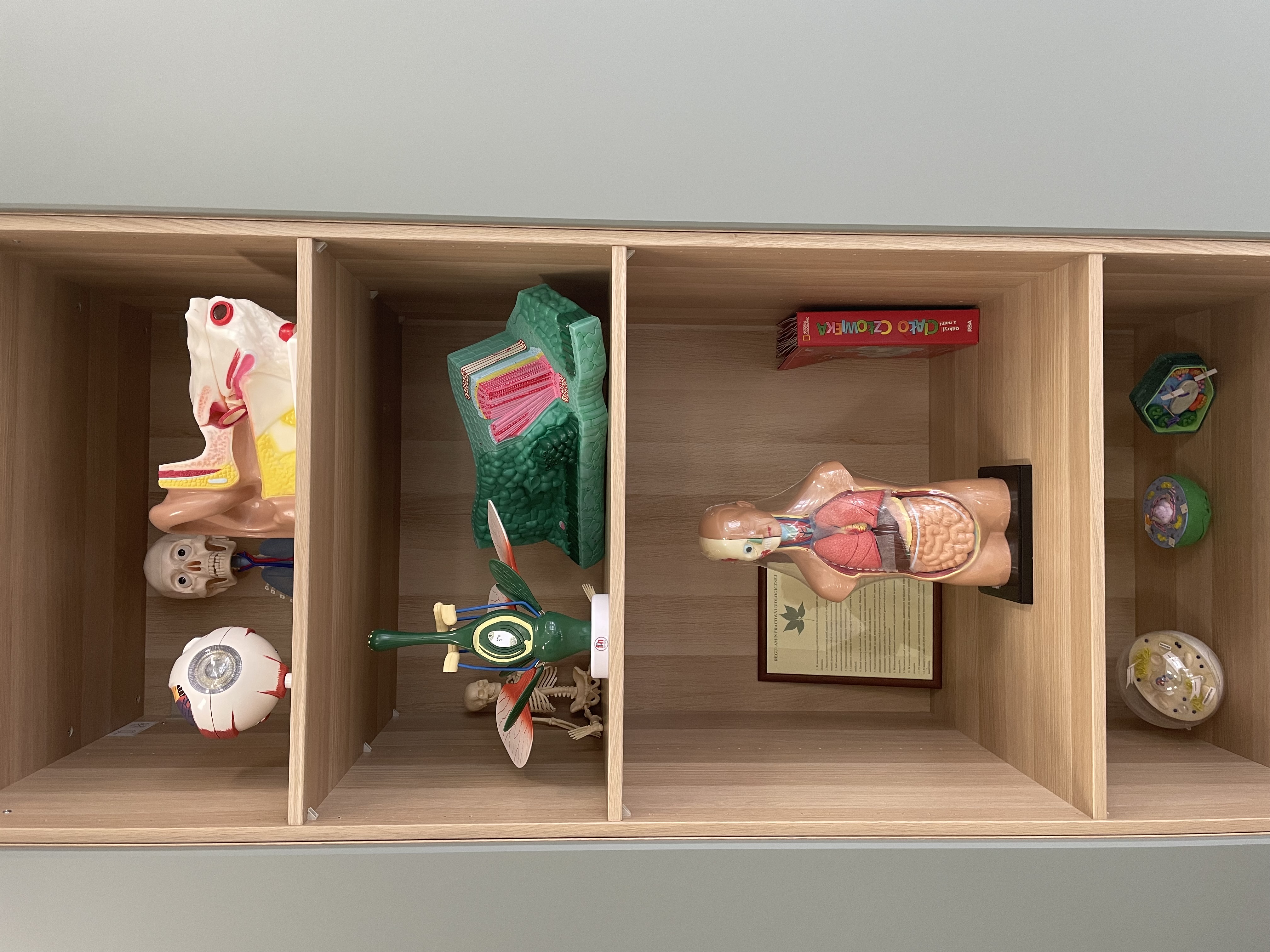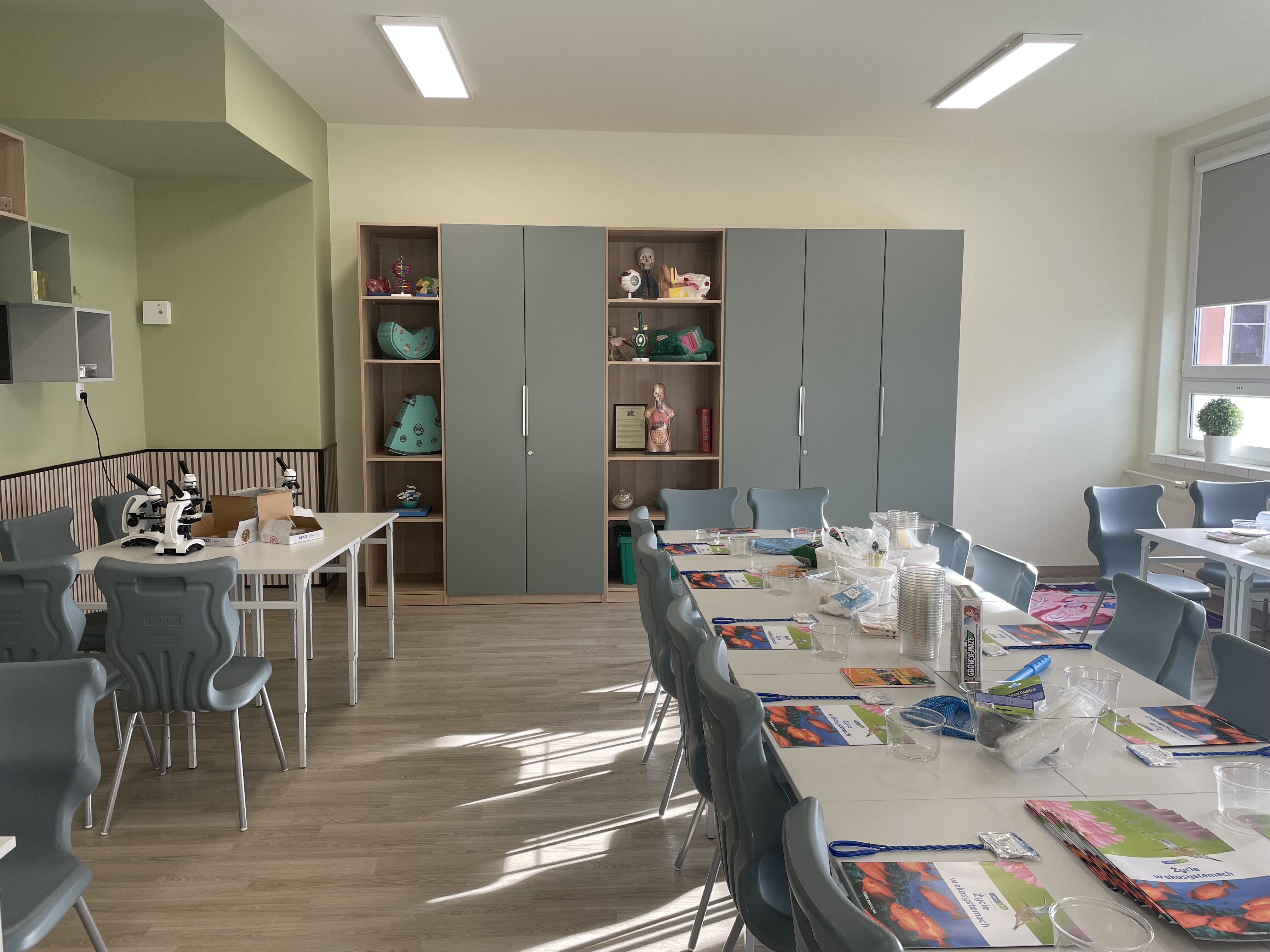 Zakupione zostały również naukowe gry planszowe, zestawy projektowe czy maty anatomiczne. Pracownia jest ładna i funkcjonalna. Zmieniono m.in. krzesła, stoły, szafy i gabloty ekspozycyjne oraz oświetlenie. Dzięki zakupionym pomocom dydaktycznym i wyposażeniu lekcje biologii nabiorą innowacyjnego  wymiaru. Za projekt odpowiada Małgorzata Kaźmierczak – nauczycielka biologii i przyrody.