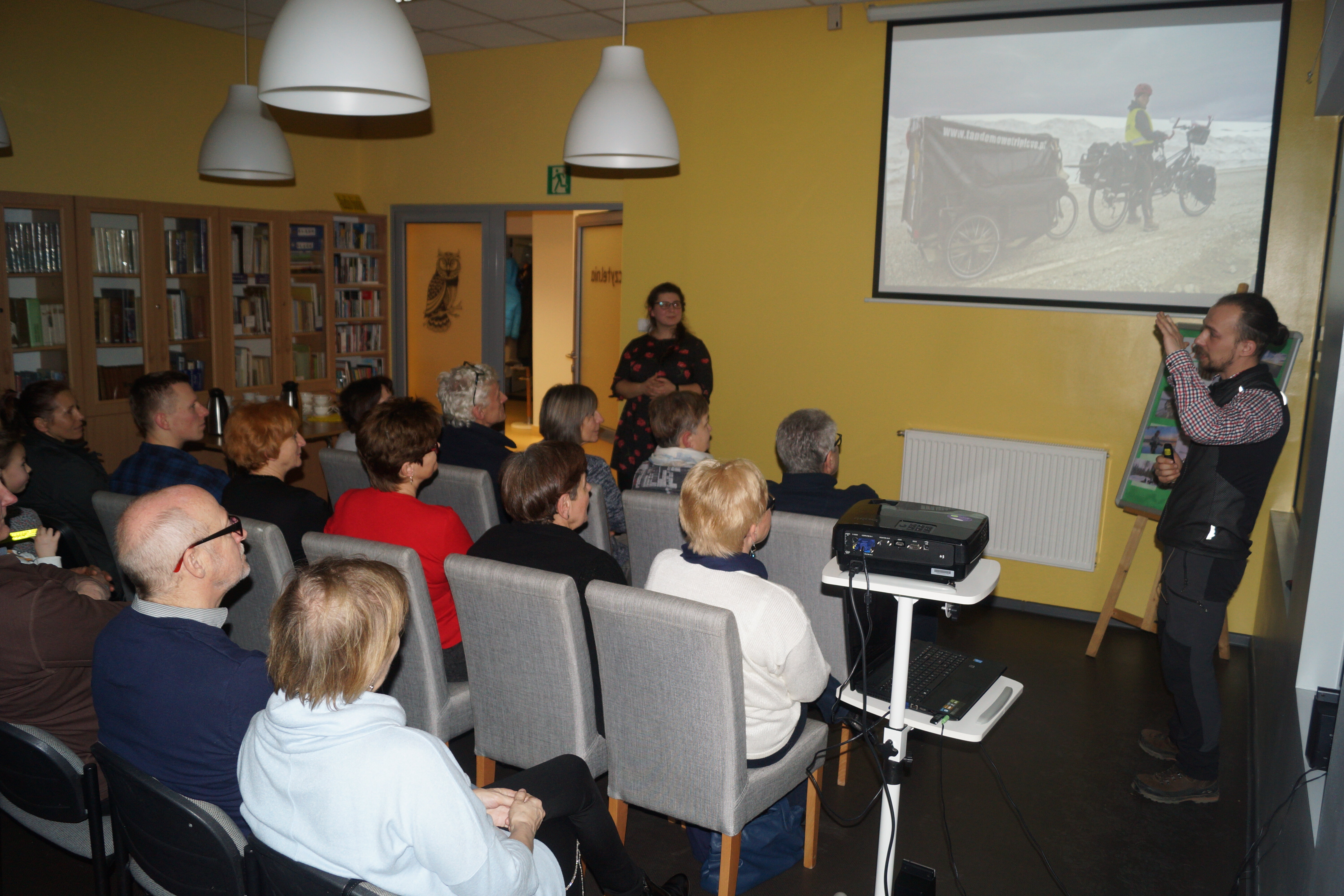 Nasi prelegenci Klaudia i Krzysztof przenieśli nas za koło podbiegunowe m.in. do pięknej zimowej Laponii. Ich wyprawa w opinii innych - nie do zrealizowania. Dziewięć miesięcy w drodze z psem (Kadlookiem), noce w namiocie podczas polarnej zimy oraz osiem tysięcy kilometrów na rowerze. Zostali pierwszymi na świecie podróżnikami, którzy przetrwali dziewięć zimowych miesięcy ekstremalnie trudnej wyprawy. Pokonali trasę pojazdem ważącym 400 kilogramów – tandemem z duża przyczepką dla 50- kilogramowego psa. Podczas podróży spotkali wielu dobrych ludzi, którzy im pomogli. Spędzili setki godzin przy ognisku oraz mieli okazję podziwiać zorzę polarną. Podzielili się wieloma ciekawostkami z podróży. Na zakończenie uczestnicy zadawali wiele pytań będąc pod dużym wrażeniem ich niezwykłej wyprawy, zdjęcia pokazują, że życie za kołem podbiegunowym bardzo różni się od tego, jakie prowadzimy na co dzień.