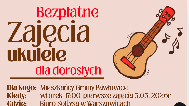 Zapraszamy mieszkańców Gminy Pawłowice na bezpłatne zajęcia nauki gry na ukulele.