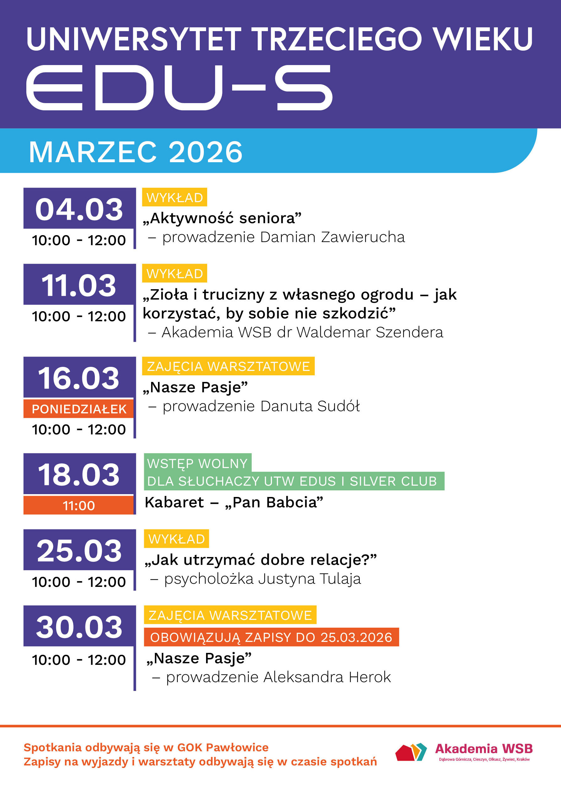 Wstęp wolny dla słuchaczy UTW EDU-S i Silver Club