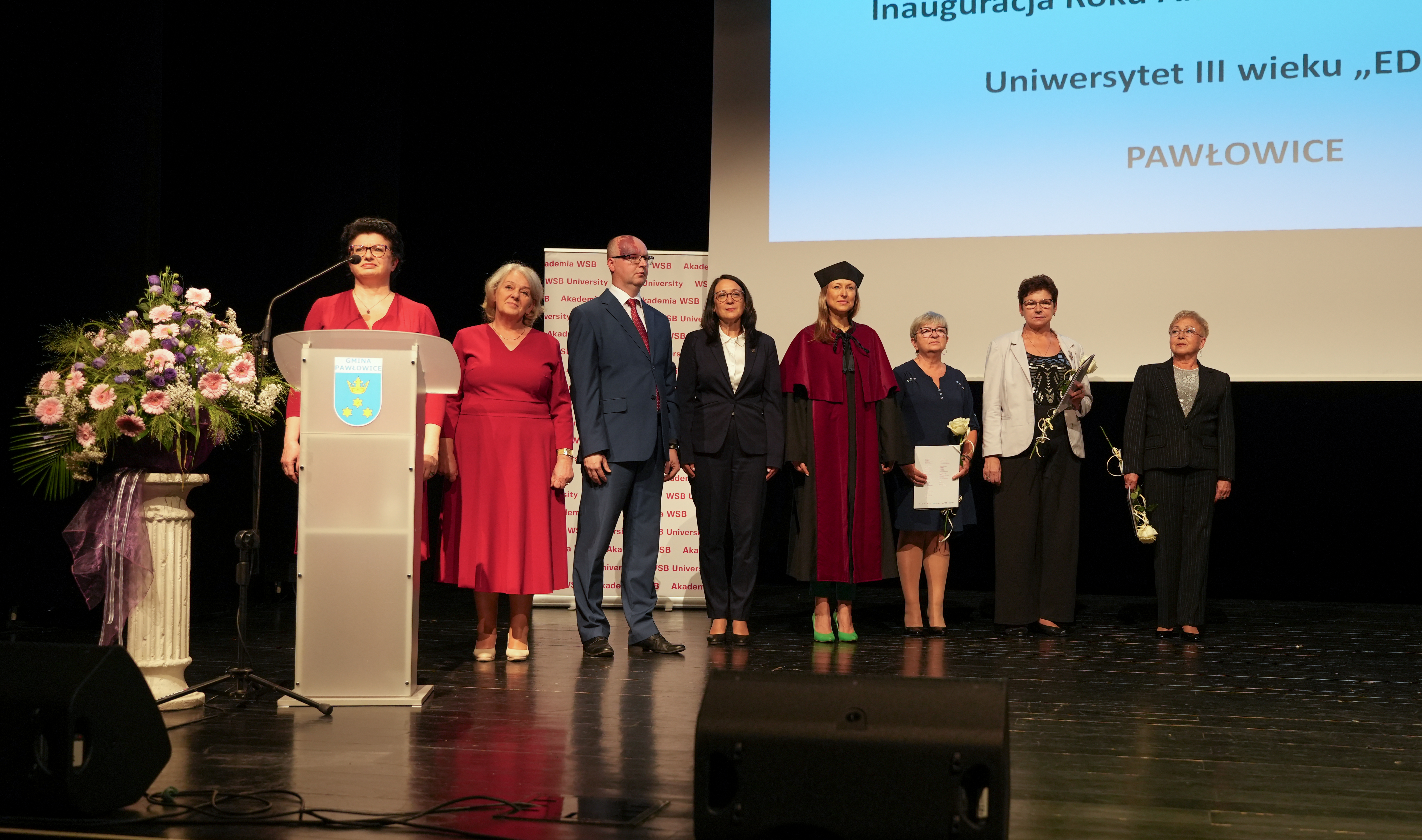 Dziękujemy Wam za tak liczne przybycie, cieszymy się, że chcecie być częścią naszej społeczności i budować z nami nowy rozdział. Pierwszy rok działalności naszego Uniwersytetu zainaugurowała Wójt Gminy Pawłowice – Pani Joanna Śmieja, podkreślając jak ważna w dzisiejszej rzeczywistości jest potrzeba aktywizowania ludzi starszych. Uniwersytet powstał przy współpracy z Akademią WSB.